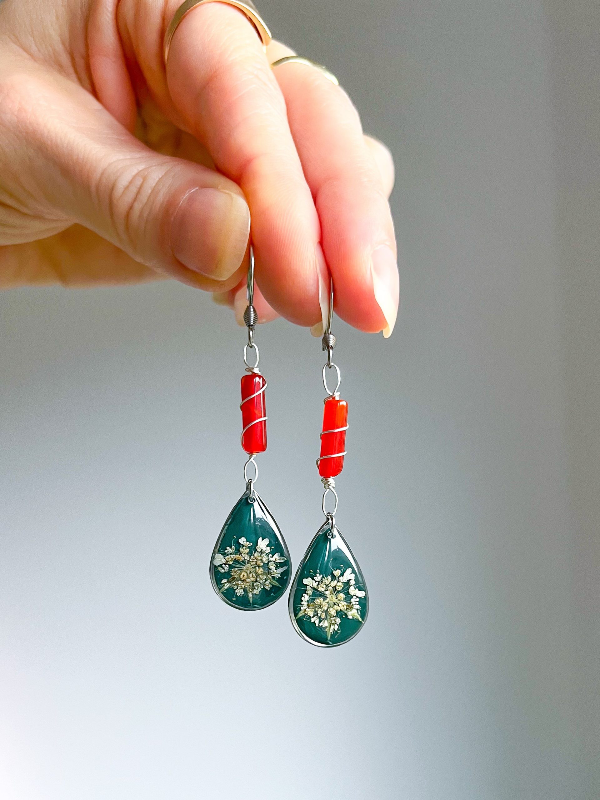 Handgegossene Schmuckstücke sind individuell und einzigartig. Sie können kleinere Luftbläschen enthalten oder die Blüte kleinere Ungenauigkeiten aufweisen. Echte Blüten können durch übermäßige Sonneneinstrahlung ihre Farbe ändern.