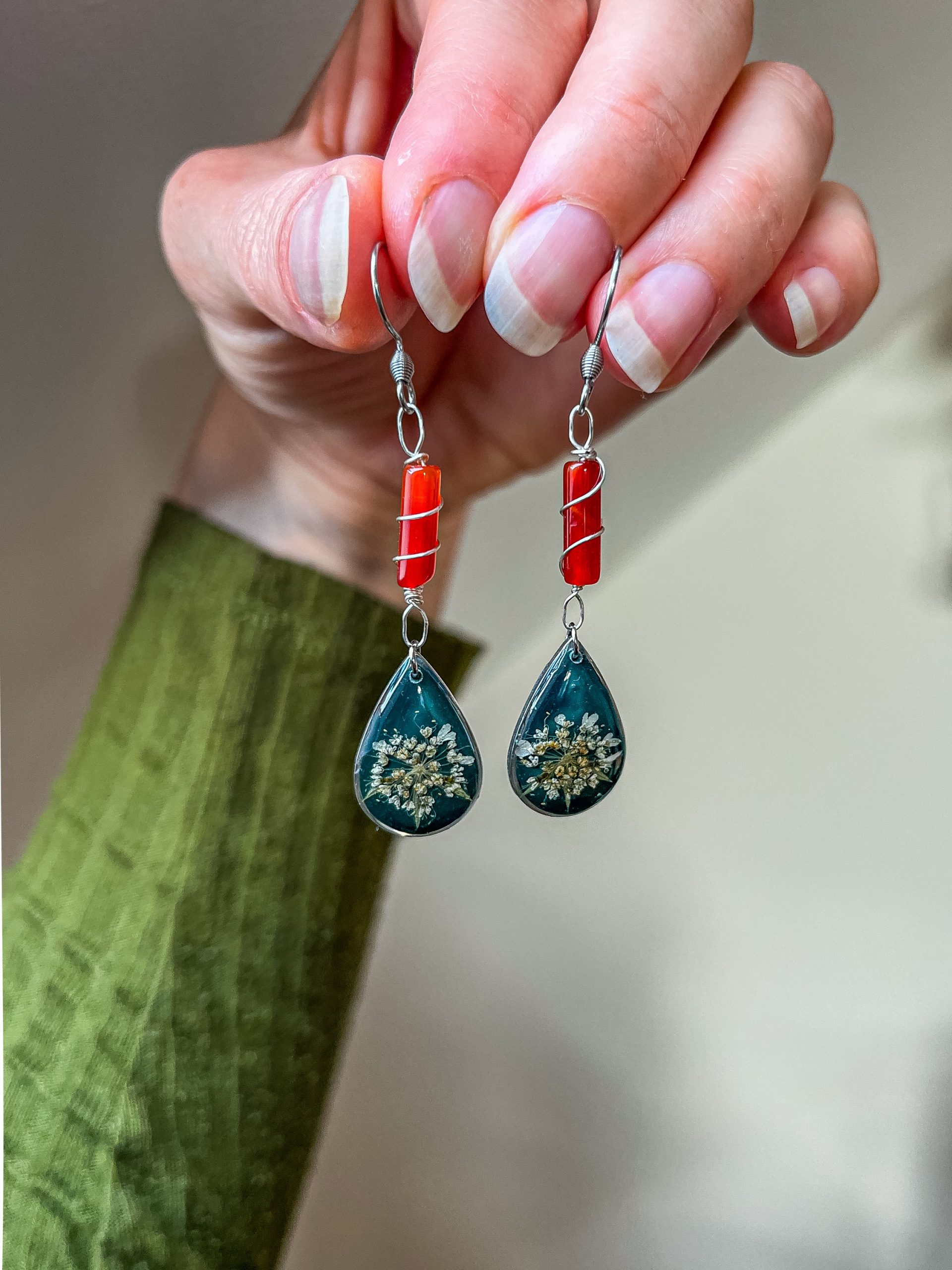 Die Blüten habe ich in Sorgfalt und mit Hingabe getrocknet und eingegossen. Alle meine Blüten stammen aus meiner direkten Umgebung. Ich pflücke sie in Wäldern, Parks und aus meinem eigenen Garten.
